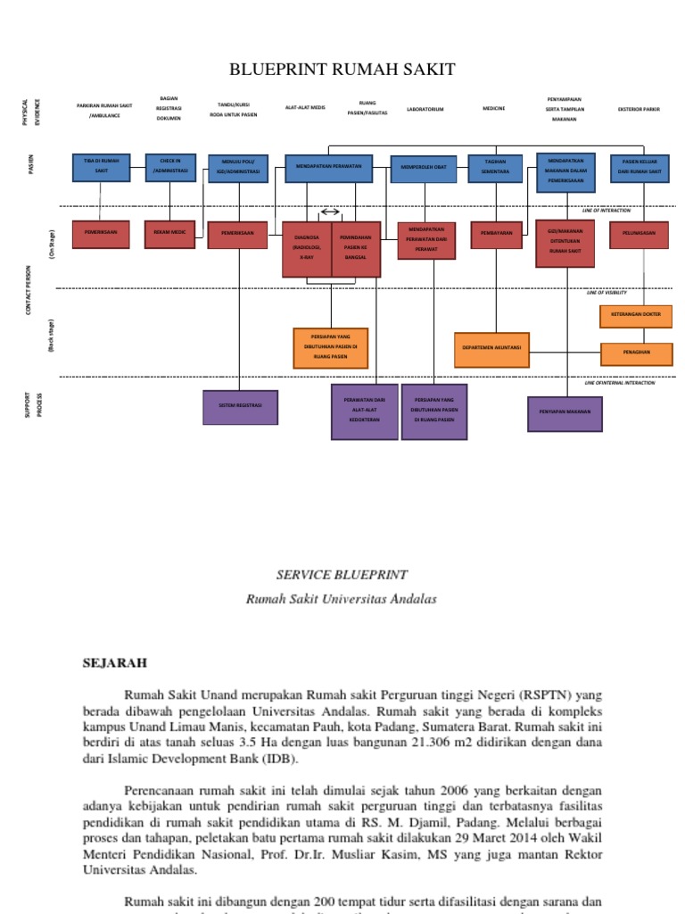 Memang perlu banyak inovasi dalam bidang kesehatan khususnya rumah sakit di indonesia. Justru service blueprint ini yang harus diciptakan oleh perusahaan untuk mendapatkan keunggulan dibanding pesaingnya sehingga sifatnya unik untuk tiap2 perusahaan. Sebatas pemahaman saya tidak ada service blueprinting yang standar untuk industri rumah sakit. Rumah sakit service blueprint efisiensi pelayanan abstract related to the hospital administrative services the researcher is interested in and tried to analyze how the administrative process of patients discharge in one of the regional general hospital in indonesia which is one of public health care facilities owned by the.